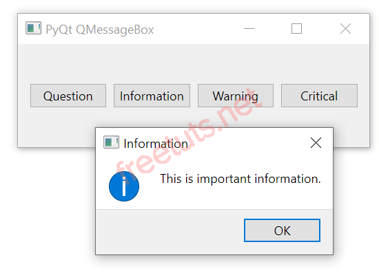 QMessageBox.information(self, 'Information', 'Đây là thông tin quan trọng.')